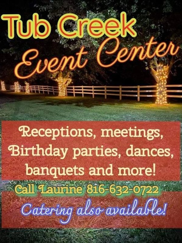 We will be hosting private parties, wedding receptions, graduations, birthdays, baby showers, family reunions and so much more! If you would like for Tub Creek to cater your event, we have packages to suit your needs! Have questions? Give Laurine a call at (816) 632-0722.